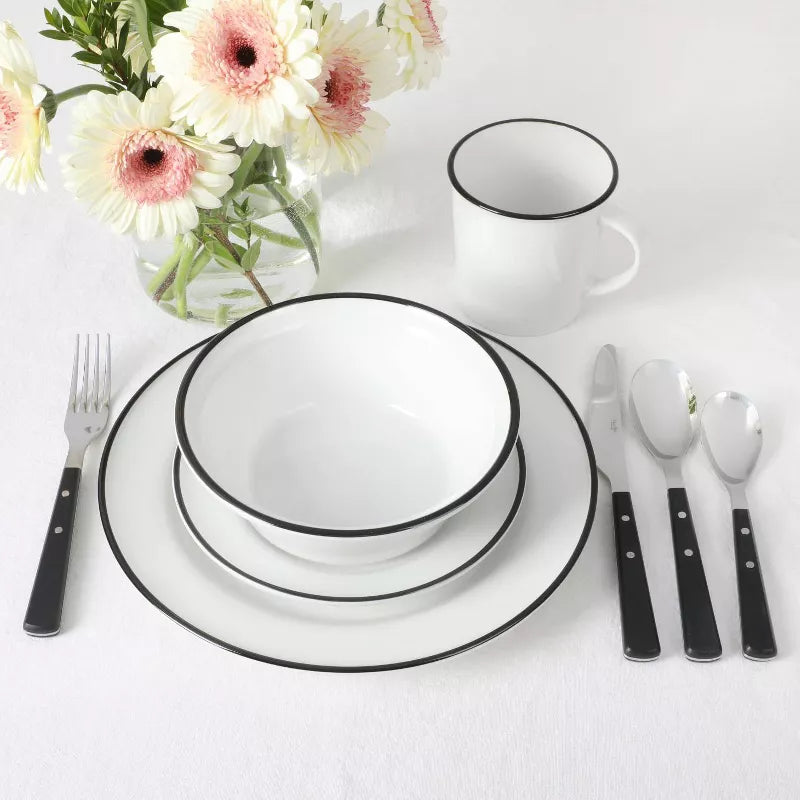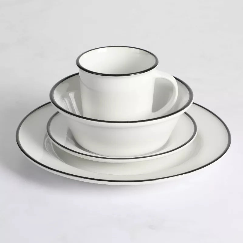 Martha Stewart Cliffield 16pc Porcelain Dinnerware Set White with Black Rim