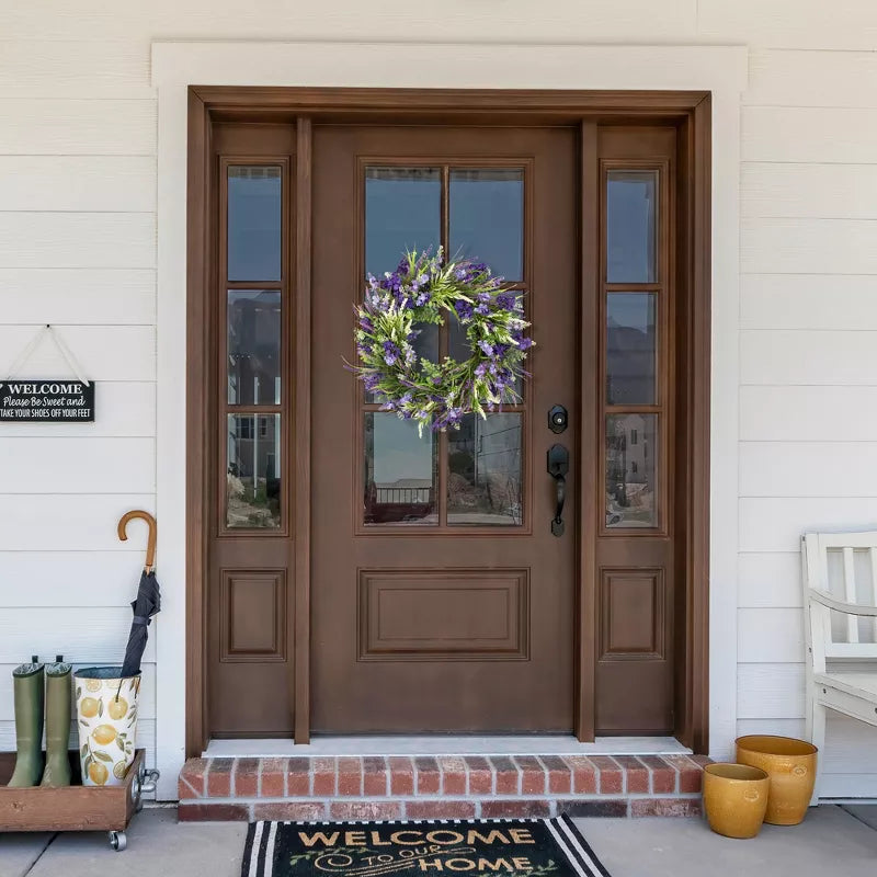 Bring a touch of spring into your home with this stunning artificial wreath. Adorned with vibrant Orion Geraniums and delicate Lavender, this wreath boasts a blend of purple, white, and pink pip berry clusters that add a charming pop of color. The natural twig grapevine backing makes it easy to hang, while the carefully crafted design ensures no assembly is needed—it's ready to display right out of the box. Features: Lavender Spring wreath Adorned with purple florals including Orion Geranium and Lavender Purple, white, and pink pip berry cluster accents Natural twig grapevine backing for hanging Recommended for indoor use only - if using outdoors place under a covered area No assembly required - wreath comes in 1 piece Dimensions: 24" diameter (measured from outermost edge to outermost edge across the wreath) Inner wreath: 11" diameter Material(s): polyester/twig/wire/plastic