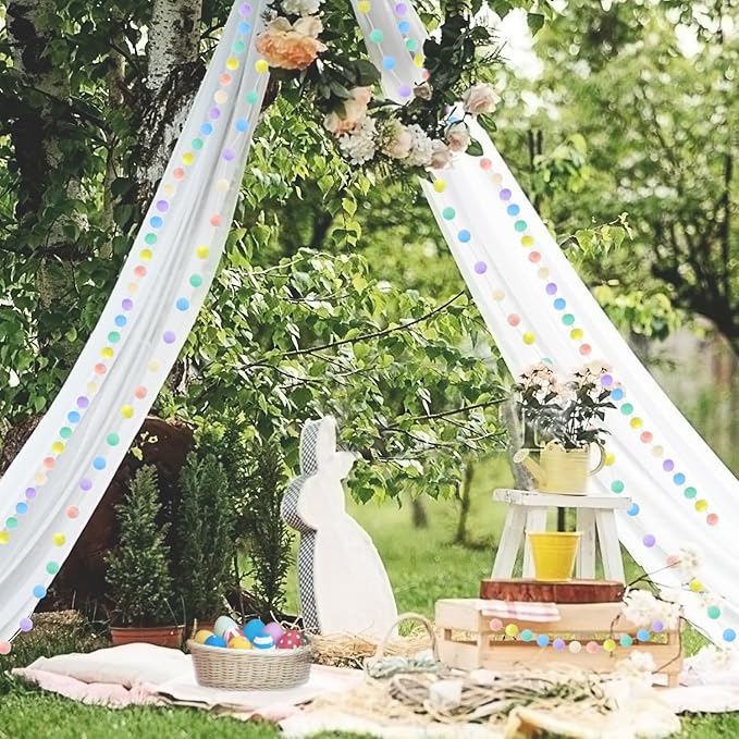 PASTEL EASTER DECORATIONS GARLAND PACK OF 3: Our Pom Pom Garland contains 24 Pom Pom Balls, the felt Pom Pom Garland is 6.6 feet/ 2m long and the Pom Pom Ball is 25mm in diameter, no knots in the felt garland, so the distance between felt balls and the total length can be adjusted. Our set contains 3 strands of elegant felt ball garland, meeting your daily, Christmas festive holiday, birthday or parties decoration needs. NOTE: Winding Risk May Exist, Please Keep Away from Kids Under 3 Years Old.